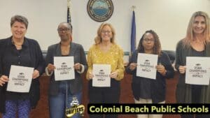 “The Colonial Beach School Board continues to make a powerful impact on public education by leading with vision, dedication, hands-on involvement, and heart. Their commitment to providing quality learning experiences reaches beyond the classroom—championing athletics, student engagement, and community pride. Beyond policy and planning, they can often be found working the concession stand at athletic games, supporting student-athletes, and cheering on the Drifters. Their efforts to build strong business partnerships have created new opportunities and resources for students, while their active participation in PTA events strengthens connections between families, schools, and the community. Through their teamwork and commitment, the Board is helping shape a school division where every student can learn, compete, and thrive—both in the classroom and beyond.”